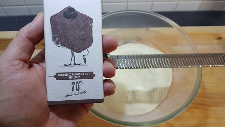 …puis c’est au tour du chocolat noir, d’être râpé…