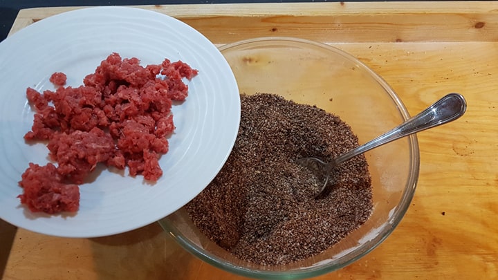 …de la viande (de veau), hachée et sautée un court instant à la poêle…