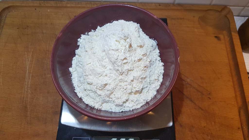 Tout d’abord, il faut peser la quantité necessaire de farine blanche T45…