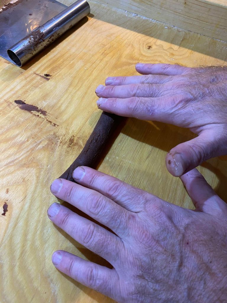 Coupez sur une planche à pâtisserie (ou à pâtes) la boule en plusieurs morceaux, et façonnez des petits boudins, qu’à Vintimille on appelle des cannellotti.