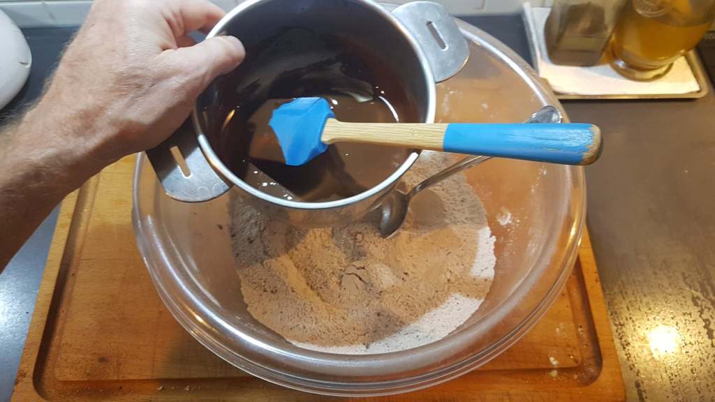 Mais ce n’est pas fini. C’est le moment d’intégrer le cacao amer, une pincée de bicarbonate alimentaire (ou de levure pâtissière)…