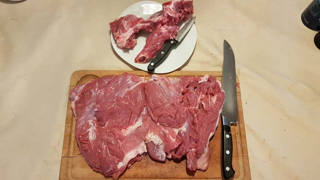 Maintenant, il faut s’attaquer au plus difficile : désosser le gigot, en ouvrant le morceau partiellement, comme un livre. Vous devrez garder l’os de côté pour la déco.