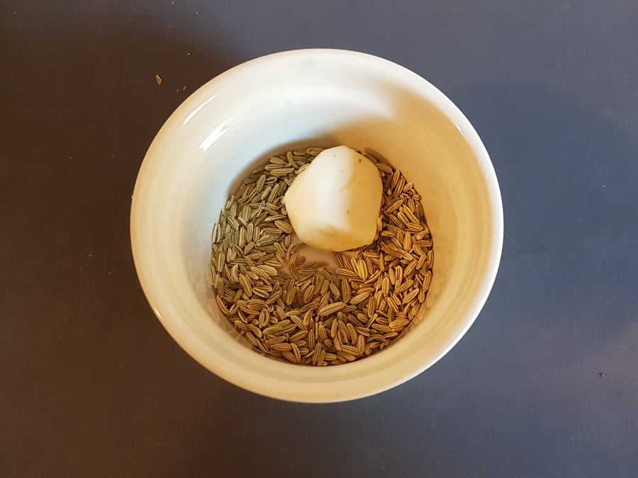 Les ingrédients surprise : une gousse d’ail et du fenouil sauvage, connu dans le patois de Busto Arsizio comme la erba bona (la bonne herbe). Si vous – comme moi – n’en trouvez pas -, utilisez des graines de fenouil bio.