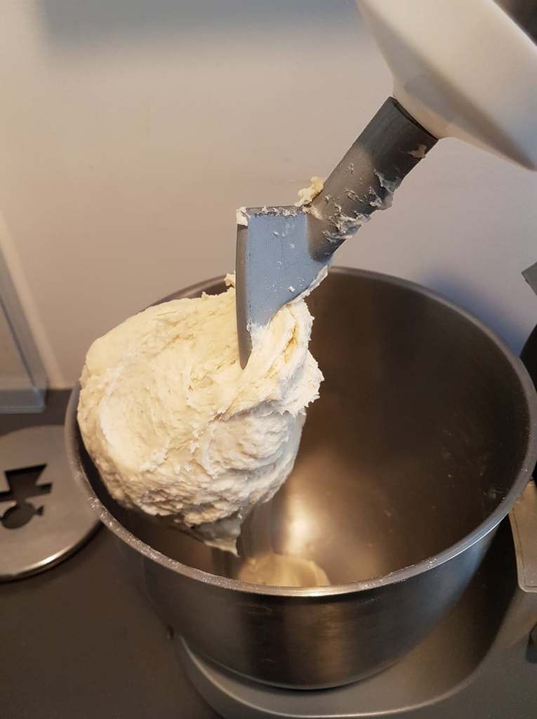 Puis ce sera au robot pétrisseur de faire le job, en ajoutant – au fur et à mesure – d’abord la levure émiettée, ensuite l’eau, le sel, le poivre moulu (il en faut pas mal), et un peu de pecorino râpé. Attention : il faudra arrêter le robot quand la pâte sera bien fixée au crochet.