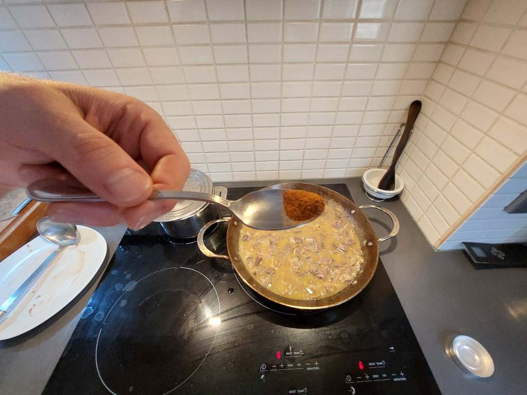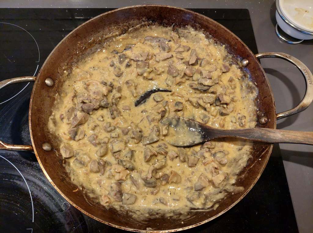 Au bout d’une trentaine de minutes, baissez la flamme, ajoutez la sauce, touillez délicatement et…