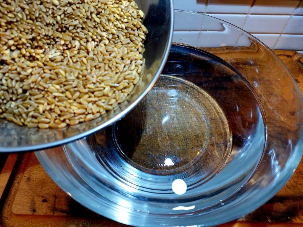 Après quoi, j’ai trempé les grains dans un grand bol rempli d’eau froide deux jours durant, en changeant l’eau trois fois par jour.
