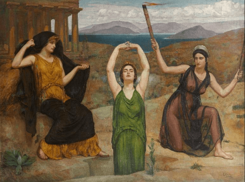 Le troisième et nécessaire élément du puzzle est une dernière fête religieuse, les Lénéennes (Λήναια/Lênaia), autre nom des bacchantes, adoratrices de Dyonisos (autrement dit Bacchos), dieu du vin et de la vigne. Elles étaient célébrées à partir de la nuit du 21 décembre (solstice d’hiver), jusqu’au 20 janvier, pour le renouvellement de la Nature, et comprenaient un festival – réservé aux hommes – avec concours de tragédies, comédies satyriques et hymnes chantés. Le gagnant recevait en don un bouc (τράγος/tragos, d’où τραγῳδία, tragédie).