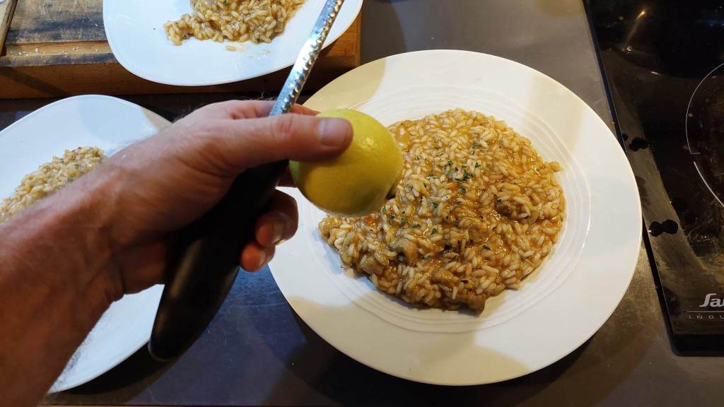 Petit conseil : pour chaque assiette, râpez un zeste de citron sur la surface du risotto. Il contribuera à le rendre encore plus parfumé.