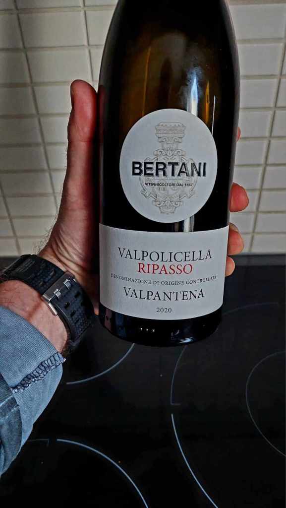 Un mot sur le vin qui accompagnera le plat. C’est le même que celui qu’on a utilisé dans la préparation du risotto : un Valpolicella rosso A.O.C.G. Ripasso, produit exclusivement dans les alentours de Vérone. La technique du ripasso consiste à verser le vin directement dans les cuves où un autre vin (l’Amarone, vin de paille rouge, du même cépage que le Valpolicella) a été préalablement broyé avant de vieillir en barriques, en le laissant reposer au contact du marc fraîchement pressé pendant environ 15 à 20 jours. Le Valpolicella s’enrichit ainsi de l’arôme propre à l’Amarone. Goûtez-le, et vous verrez que ça valait la peine d’étudier les oeuvres de Palladio…
