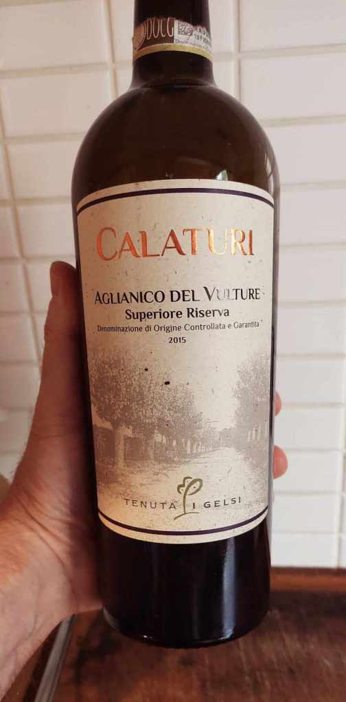Pour accompagner ce plat de bergers (et pas que), un vin s’impose : l’Aglianico del vulture, un rouge A.O.C.G. cultivé en Basilicata dans la province de Potenza déjà au VIIe siècle avant J.-C., apprécié aussi (mais pas que) par Charles Ier d’Anjou, roi de Naples et de Sicile au XIIIe siècle.