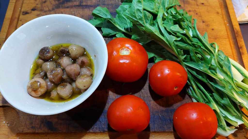 … de tomates, de chicorée de Catalogne, de quelques muscaris (petits bulbes comestibles au goût légèrement amer)…
