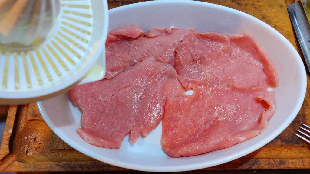 Alors, bien qu’on puisse être induit en erreur par le mot, la référence à la côtelette est seulement historique, un prêt littéraire. Dans la réalité, on n’utilise pas de côte mais – si on suit la règle – la fesa (noix, ou escalope en français), morceau tendre et juteux de la cuisse, qui est souvent aplati à l’aide d’un attendrisseur avant son utilisation.