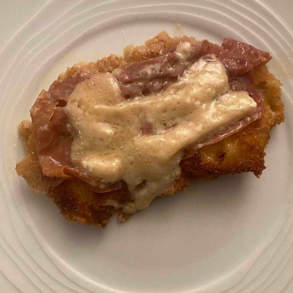 Et Bologne ? Elle n’est pas en reste et a inventé sa propre recette, qui nous est parvenue grâce à Pellegrino Artusi, critique littéraire et gastronome, qui, en 1891, a décrit de façon officielle la « cotoletta alla bolognese« . Tout d’abord, la viande n’a pas d’os, à la différence de la « cotoletta alla milanese » et puis elle existe en deux versions : panée dans la chapelure et le parmesan, puis recouverte de truffe… ou bien panée et recouverte de tranches de jambon sec. La cuisson est au beurre.