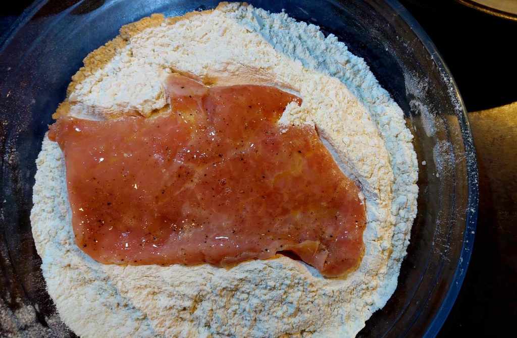 Faites de même dans la farine tamisée. Puis remettez la viande dans les oeufs…