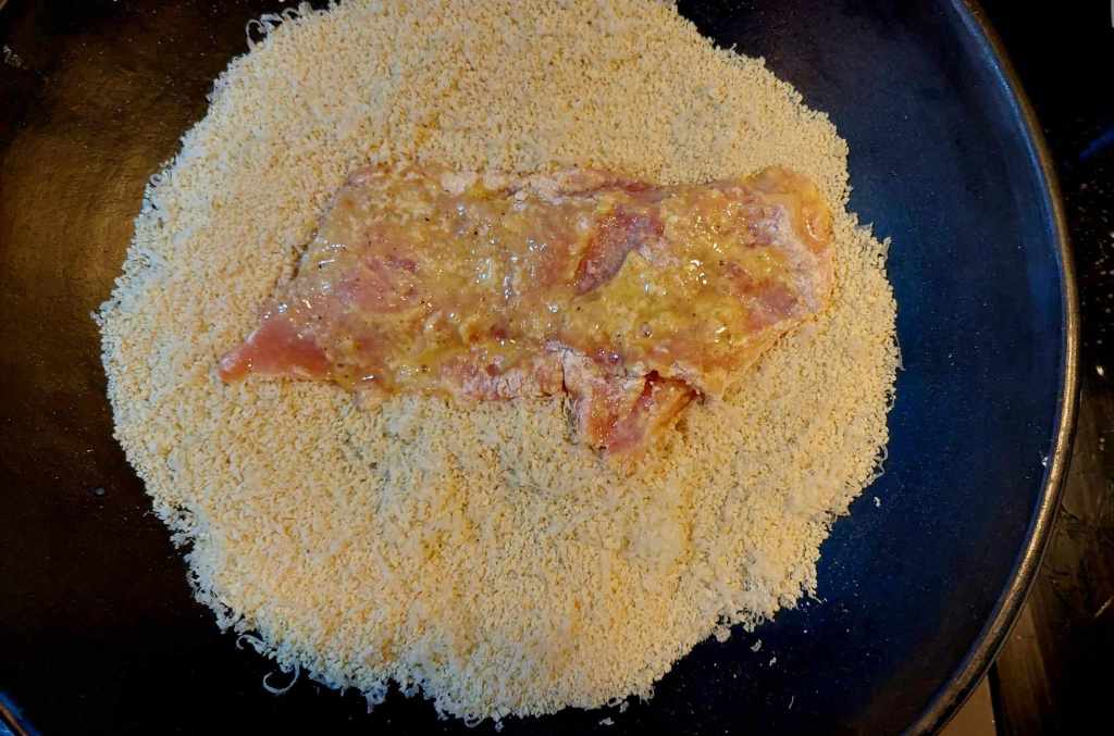 Et finalement terminez avec la chapelure mélangée au parmesan.