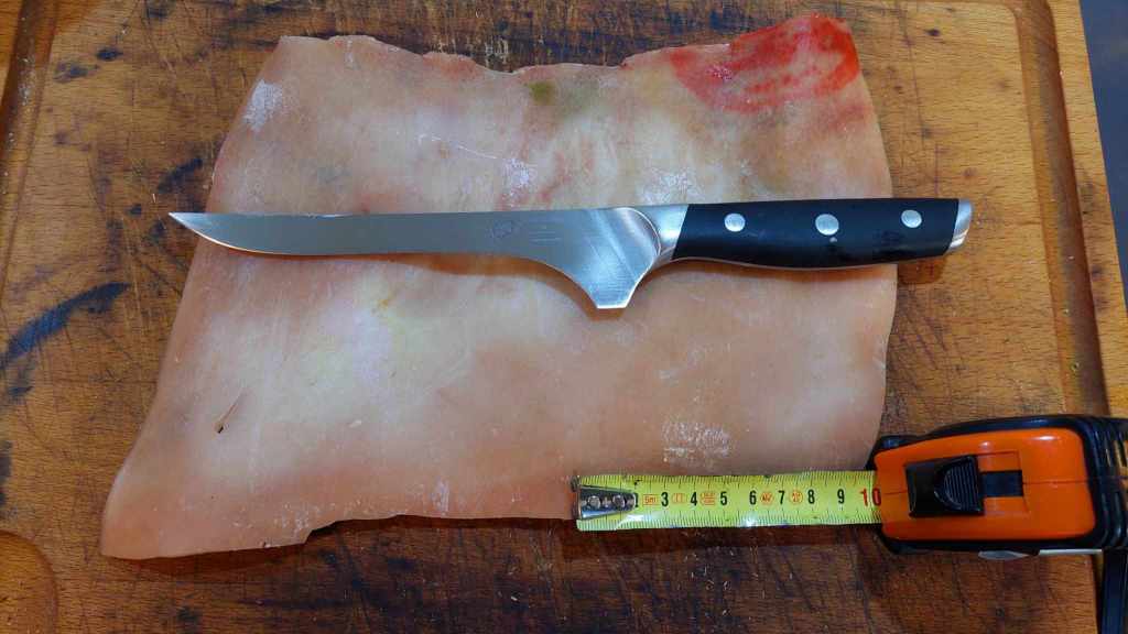 En outre, j’ai acheté un morceau de couenne, que j’ai moi-même coupé en rectangles de 10×12 cm. Les deux ingrédients doivent être ébouillantés un court instant.