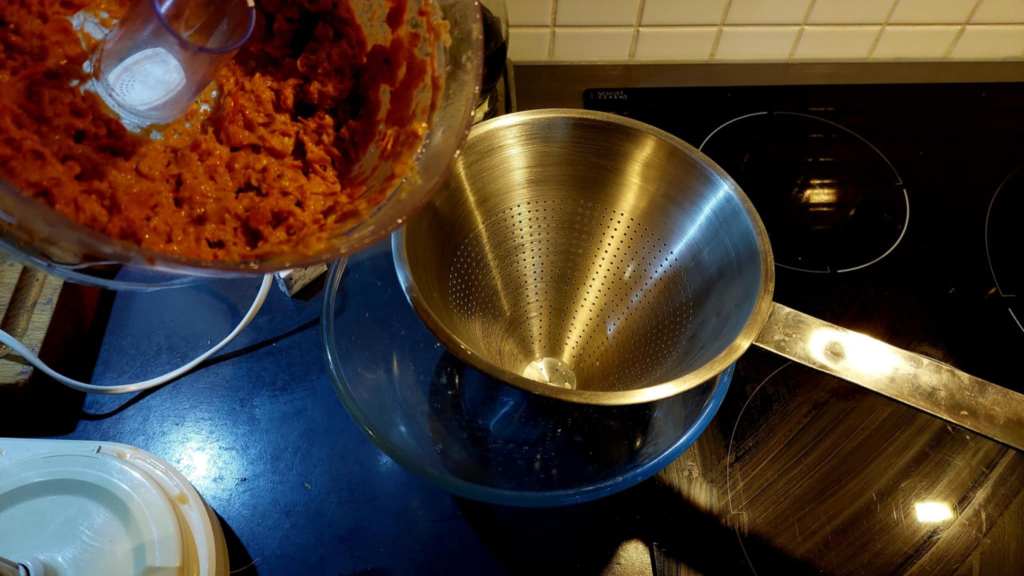 Dernière étape, l’ensemble doit être pressé et filtré au chinois…