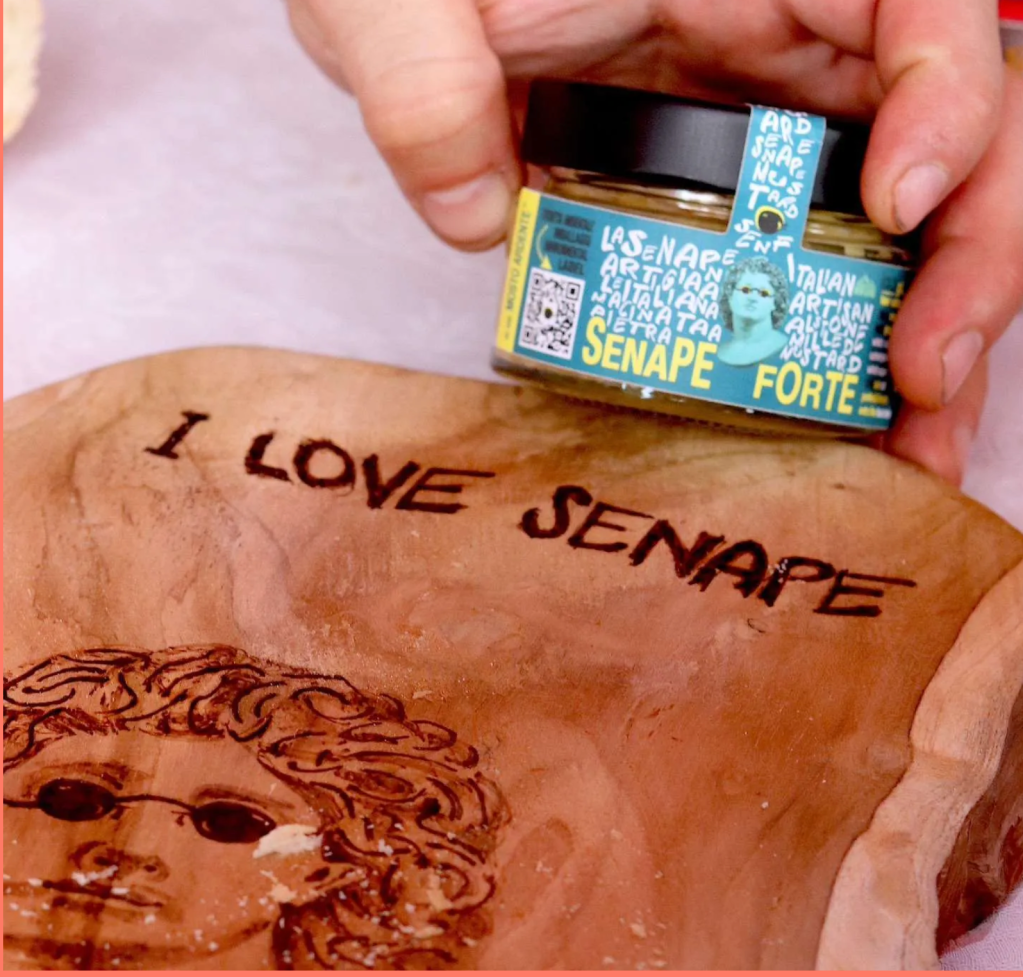 Tout d’abord, l’origine du mot moutarde, qui dérive du latin mustus ardens, le « moût de raisin qui brûle ». Déjà à l’époque de la Rome antique en effet, on connaissait le pouvoir antibactérien du moût de raisin concentré, cuit longtemps avec les graines de sinapis (moutarde pour les Français, senape pour les Italiens), genre de plante herbacée (d’origine indienne) de la famille de Brassicaceae (choux, navet, raifort…), jusqu’à devenir une sauce sombre, épaisse et piquante, utilisée pour conserver les fruits d’été tout au long de l’année.