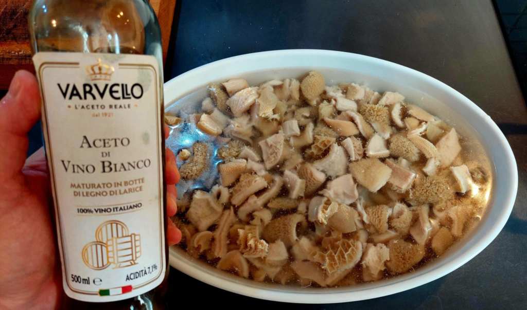 Pour éliminer l’odeur forte éventuelle des abats, il faut bien les laver sous l’eau courante, puis les plonger dans un grand saladier pour une dizaine de minutes. Versez dessus du vinaigre de vin blanc et ajoutez suffisamment d’eau pour les recouvrir complètement. Vous pouvez ajouter à cette marinade des feuilles de laurier, même si elles ne sont pas indispensables.