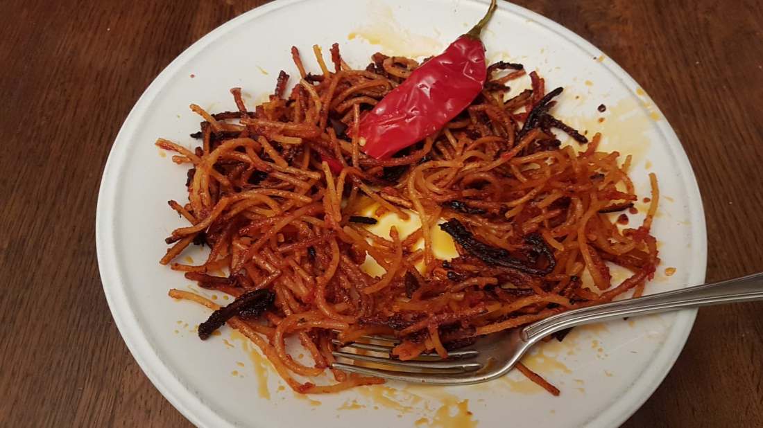 Spaghetti all’assassina alla barese (spaghetti « à la tueuse » comme à Bari)